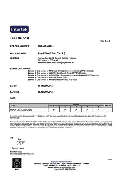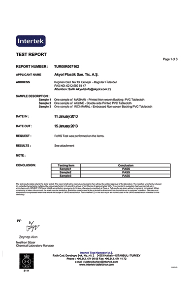Akyol Plastik A.Ş., ISO 9001 belgesine sahip olup, kalite yönetim sistemi standartlarına uygun ürünler üretmektedir.Pvc Test Raporları